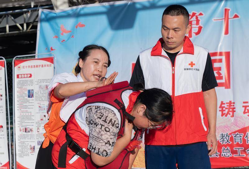 志愿者现场讲解应急救护知识。李山冕摄